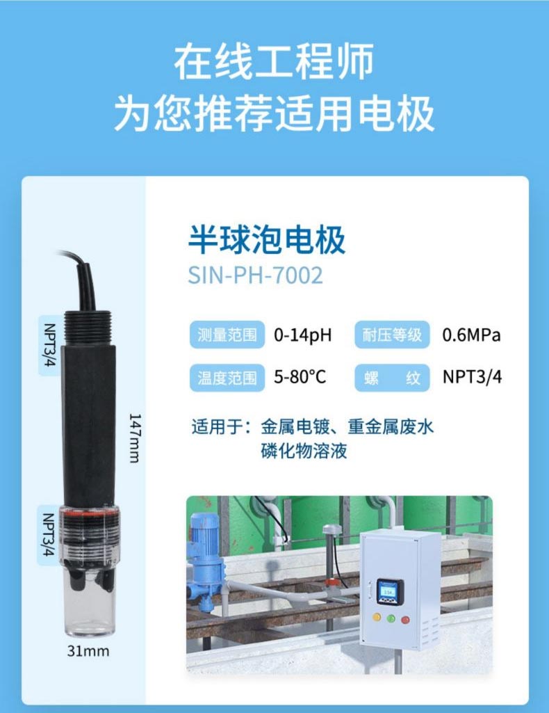 產(chǎn)品名稱:聯(lián)測(cè)_SIN-pH-7002半球泡電極_電鍍廢水專用款