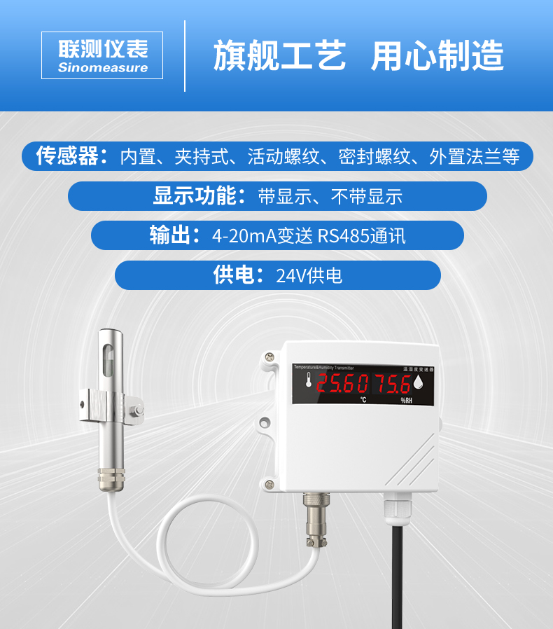 產品名稱:聯測_壁掛式溫濕度傳感器變送器 (4-20)mA RS485_溫濕度計帶顯示_